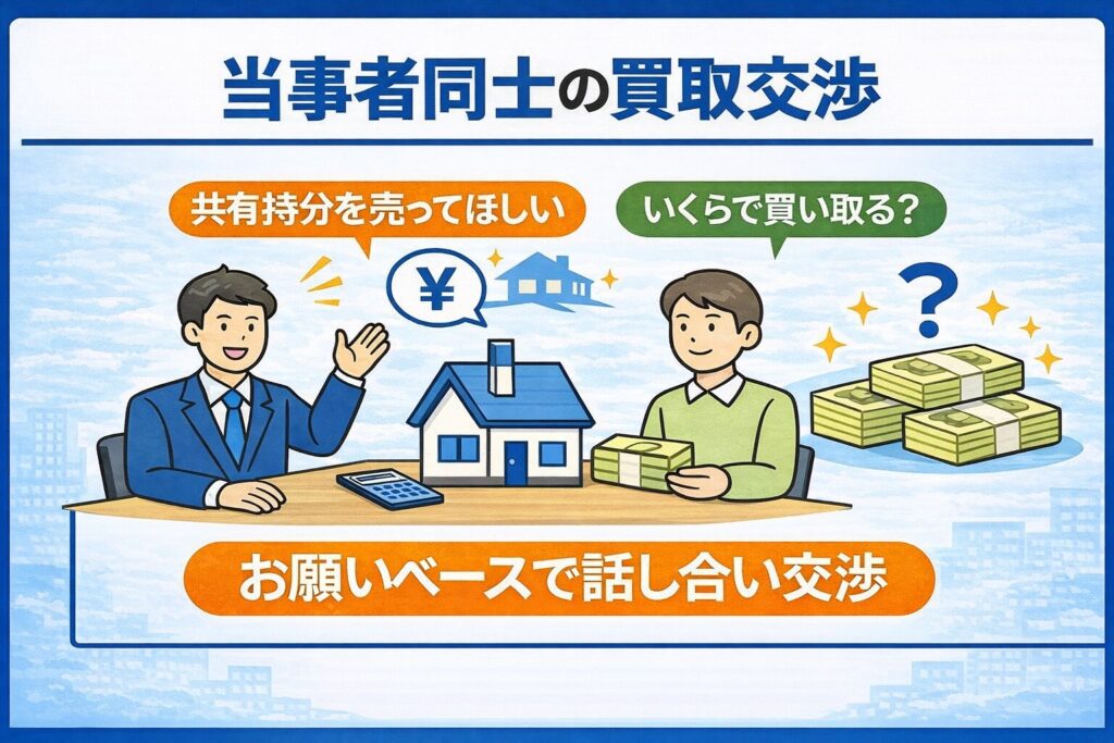 当事者同士の買取交渉とは、他の共有者に「共有持分を買い取りたい、売ってほしい」とお願いベースで交渉することです。