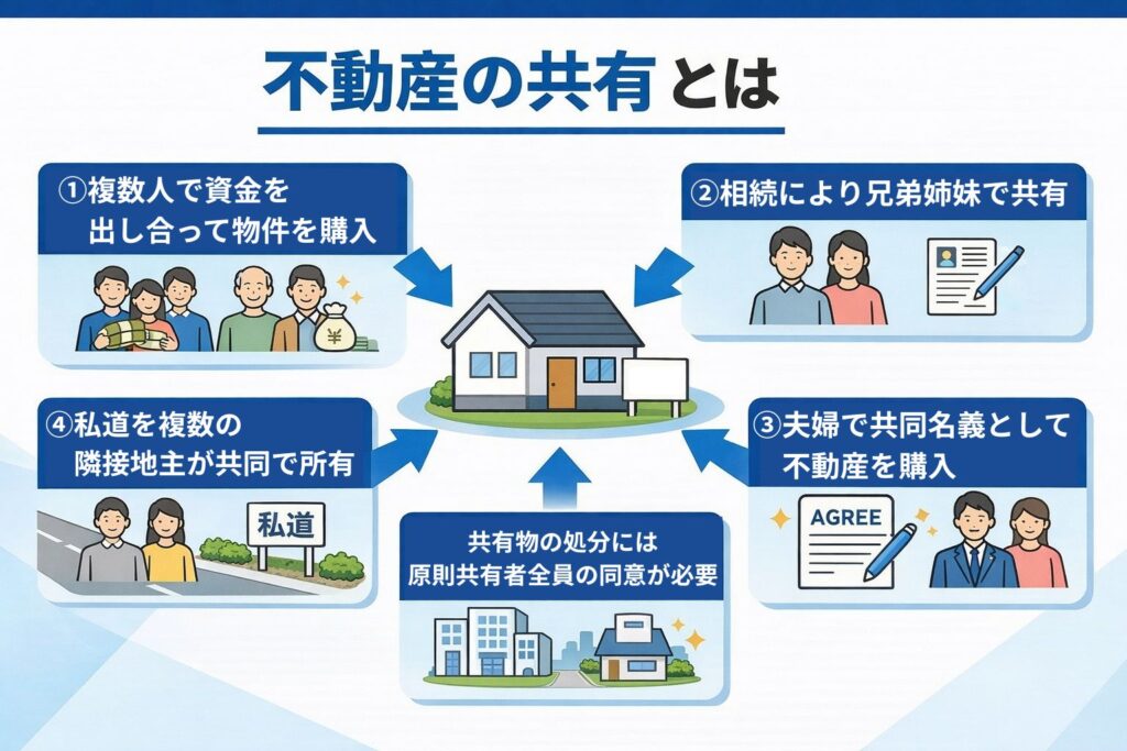 共有持分は「割合だけの権利」で単独処分には限界がある:売却や賃貸など不動産全体の処分は原則として共有者全員の同意が必要になる。
