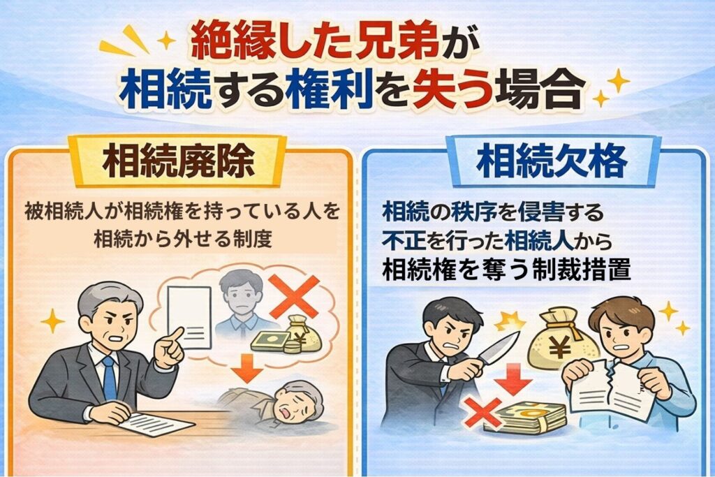 絶縁した兄弟に欠格事由が当てはまれば、相続権を失う可能性があります。