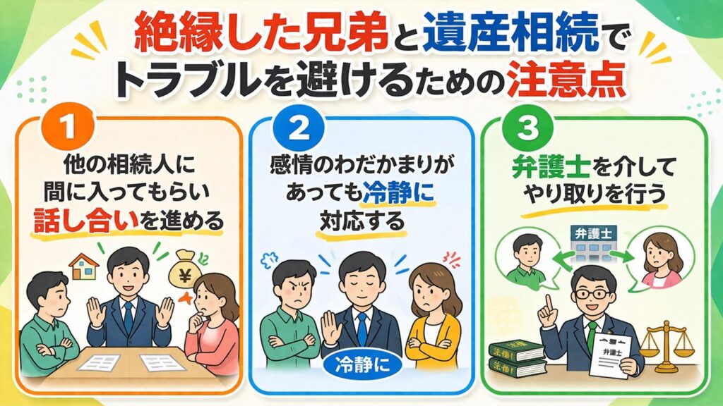 絶縁した兄弟と遺産分割について話し合う際の注意点は、以下の通りです。